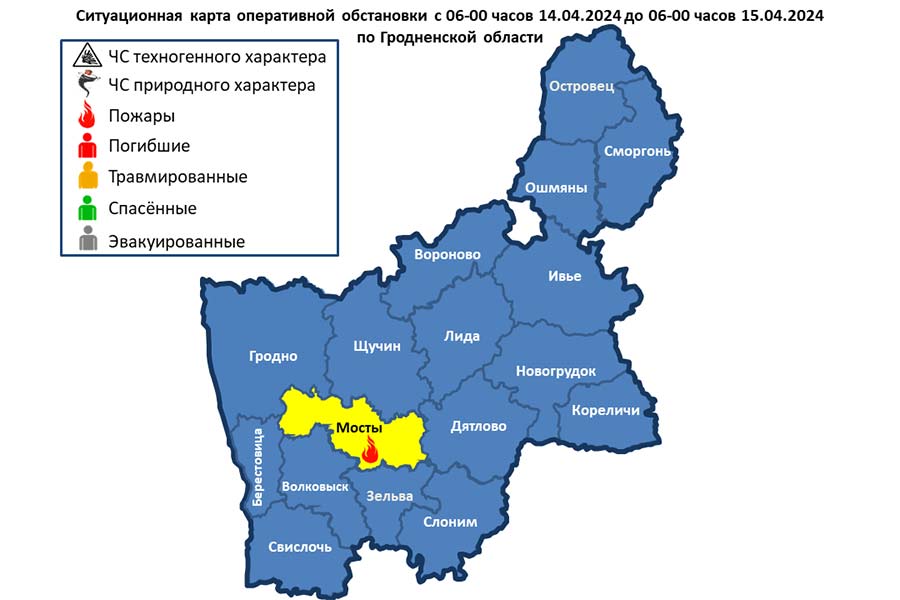 15.04.2024 в 02-01 поступило сообщение о пожаре хозпостройки с гаражом под одной кровлей на территории частного домовладения в аг. Хартица Мостовского района. В результате повреждены кровля, перекрытие, стены и имущество. Причина пожара устанавливается.