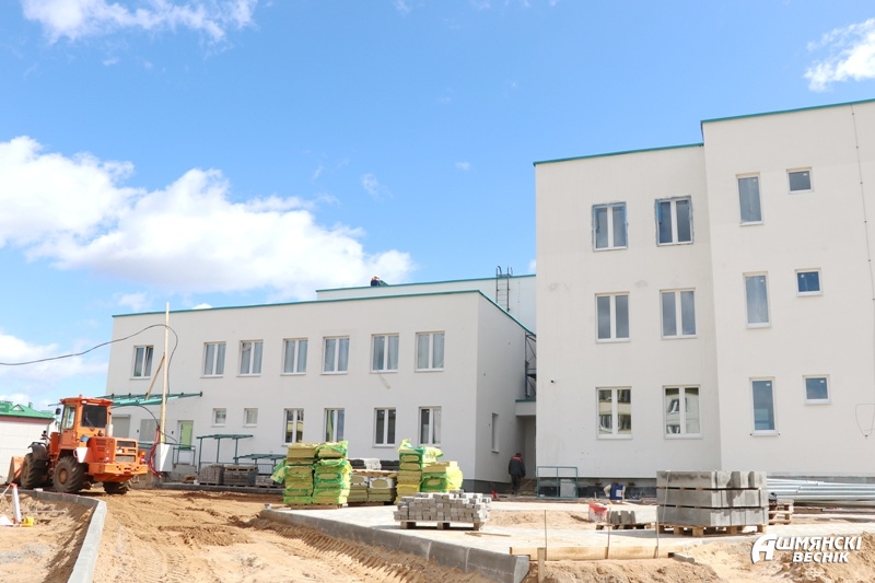 На данный момент строители ведут работы по покраске фасада. Будет он яркий и позитивный — и заказчик (УКС Ошмянского района), и подрядчик ориентировались на детскую аудиторию, ведь именно малыши здесь будут полноценными хозяевами. Параллельно активно идет благоустройство прилегающей территории. А под теневыми навесами уже ожидает детвору красочное оборудование, подобранное для уличных игровых площадок.