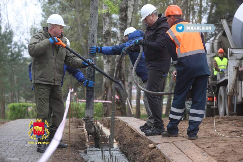 Задача на сегодня: залить фундамент, на котором позже установят памятные таблички с именами погибших. Также во время субботника очистят прилегающую к мемориалу территорию и высадят аллею деревьев.