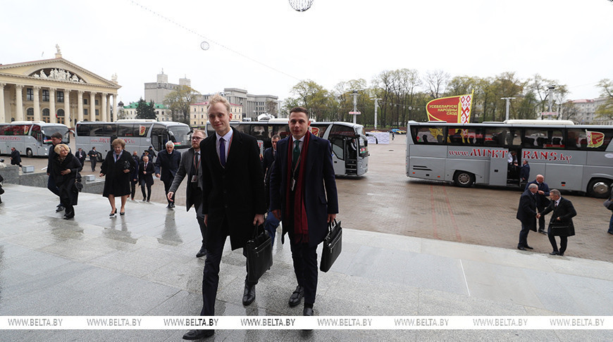 Делегаты из всех регионов Беларуси прибывают в Минск во Дворец Республики для участия в VII ВНС.