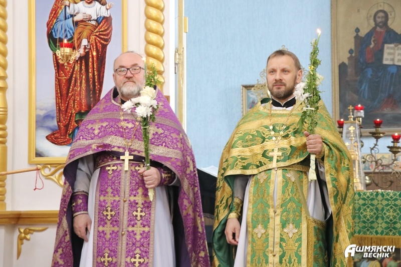 Урачыстая літургія і асвячэнне вярбы адбылося ў храме Уваскрэсення Хрыстова ў Ашмянах.