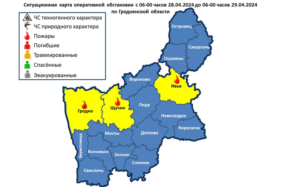 28.04.2024 в 16-10 поступило сообщение о пожаре в жилом доме в аг. Морино Ивьевского района. В результате повреждено имущество, закопчены стены и потолок. Причина пожара устанавливается.