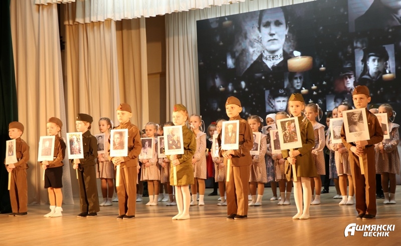 В текущем году, обращаясь к участникам VII Всебелорусского народного собрания, Президент нашей страны отметил, что белорусский народ знает, что значит быть сильными во имя мира. Наша сила – в нашей памяти. Ни на мгновение не забывают об этом работники сферы дошкольного образования. Постановка в исполнении воспитанников наших детских садов стала тому подтверждением. В ней творческие способности и гражданско-патриотические качества продемонстрировали как дети, так и педагоги. Здесь нужно отметить также и умение администрации детсадов объединить и «зажечь» общей задачей всех – воспитателей, детей и их родителей. В подготовке постановки приняли участие как городские учреждения, так и сельские: кто-то готовил фотозоны, кто-то помогал в оформлении сцены и сменяющих друг друга декораций. Не остались в стороне от творческого процесса родители, подставив плечо ради общего доброго дела.