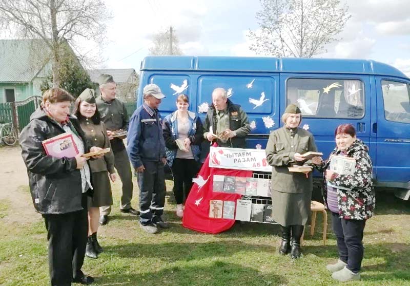 Па населеных пунктах Ашмянскага раёна ўжо курсіруе “Франтавы экспрэс”, у які ператварыўся бібліёбус раённай бібліятэкі. З літаратурай аб вайне ён ужо пабываў у Ягелаўшчыне, Грынцах, Палянах. Да пачатку ліпеня “Франтавы экспрэс” наведае і іншыя населеныя пункты, а іх у маршруце бібліёбуса значыцца больша за сорак.