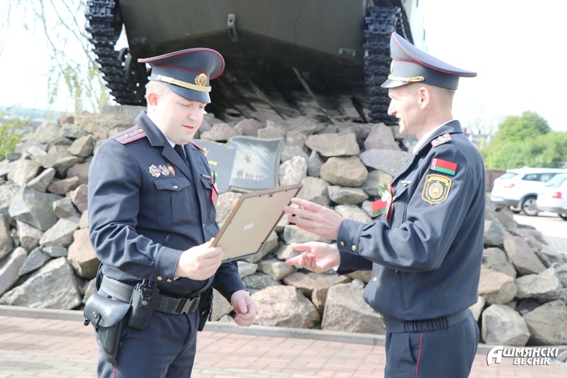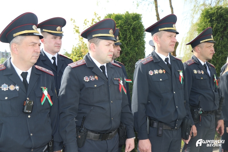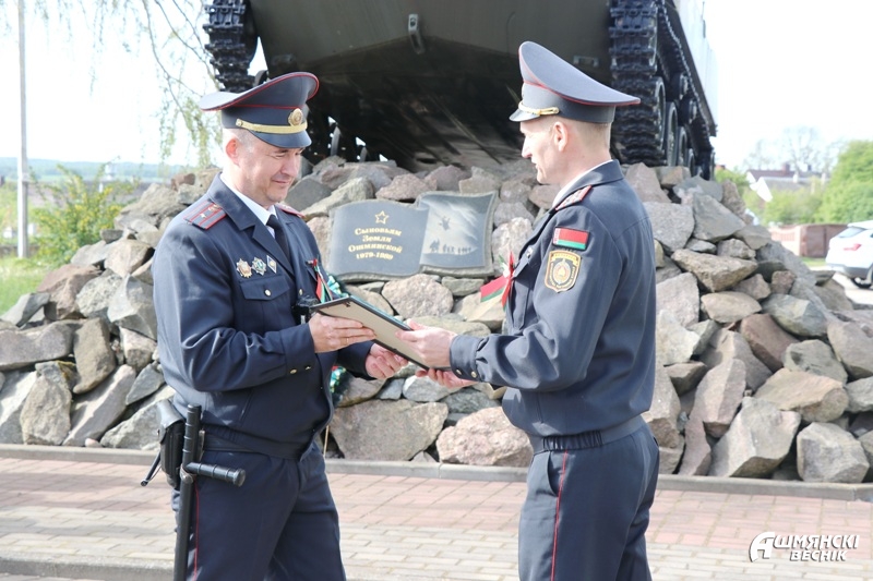 Инструктаж нарядов подразделений Ошмянского РОВД прошел в Великий праздник Победы. В торжественной обстановке у памятника в честь воинов-интернационалистов, исполнявших воинский долг в Афганистане, коллектив правоохранителей поздравил временно исполняющий обязанности по должности начальника РОВД Владимир Олехнович.