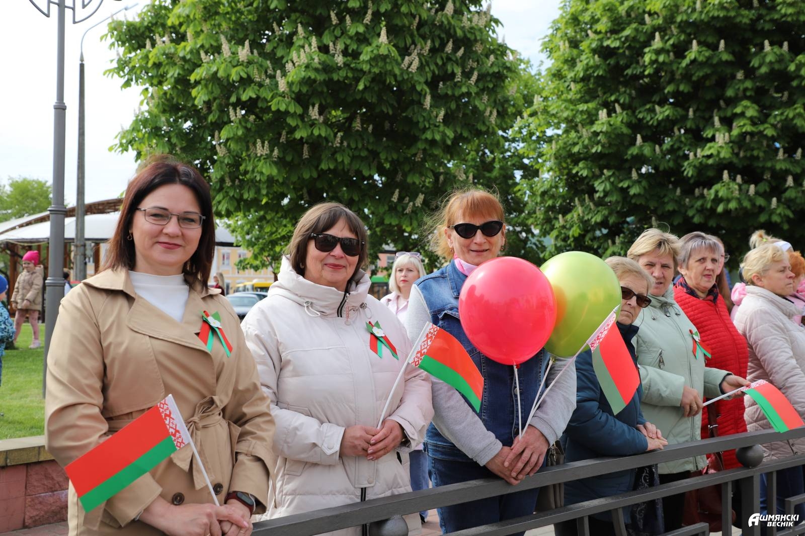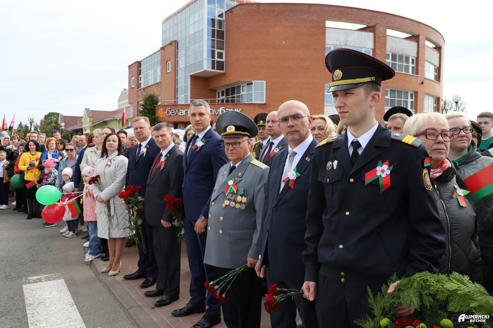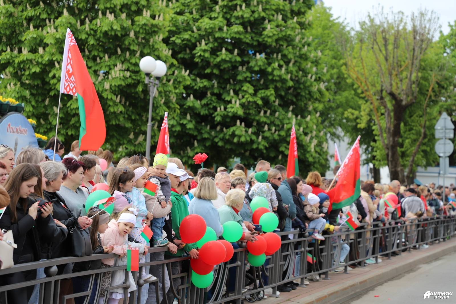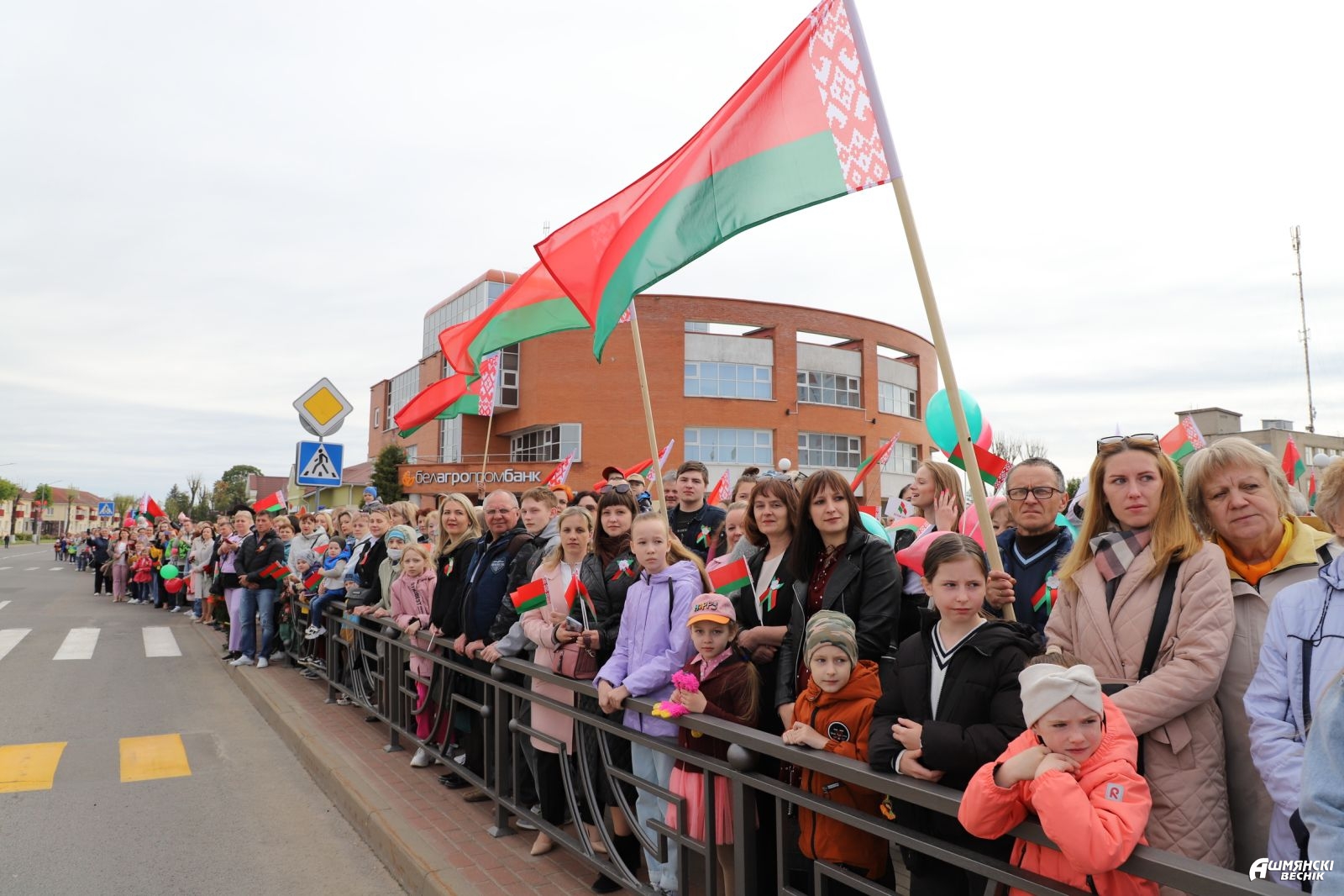 К праздничной колонне присоединяются представители руководства района во главе с председателем районного исполнительного комитета Владиславом Гершгориным, активисты общественных объединений, коллективы отдела внутренних дел, Департамента охраны и других силовых структур.