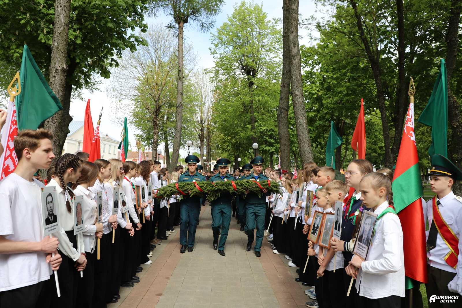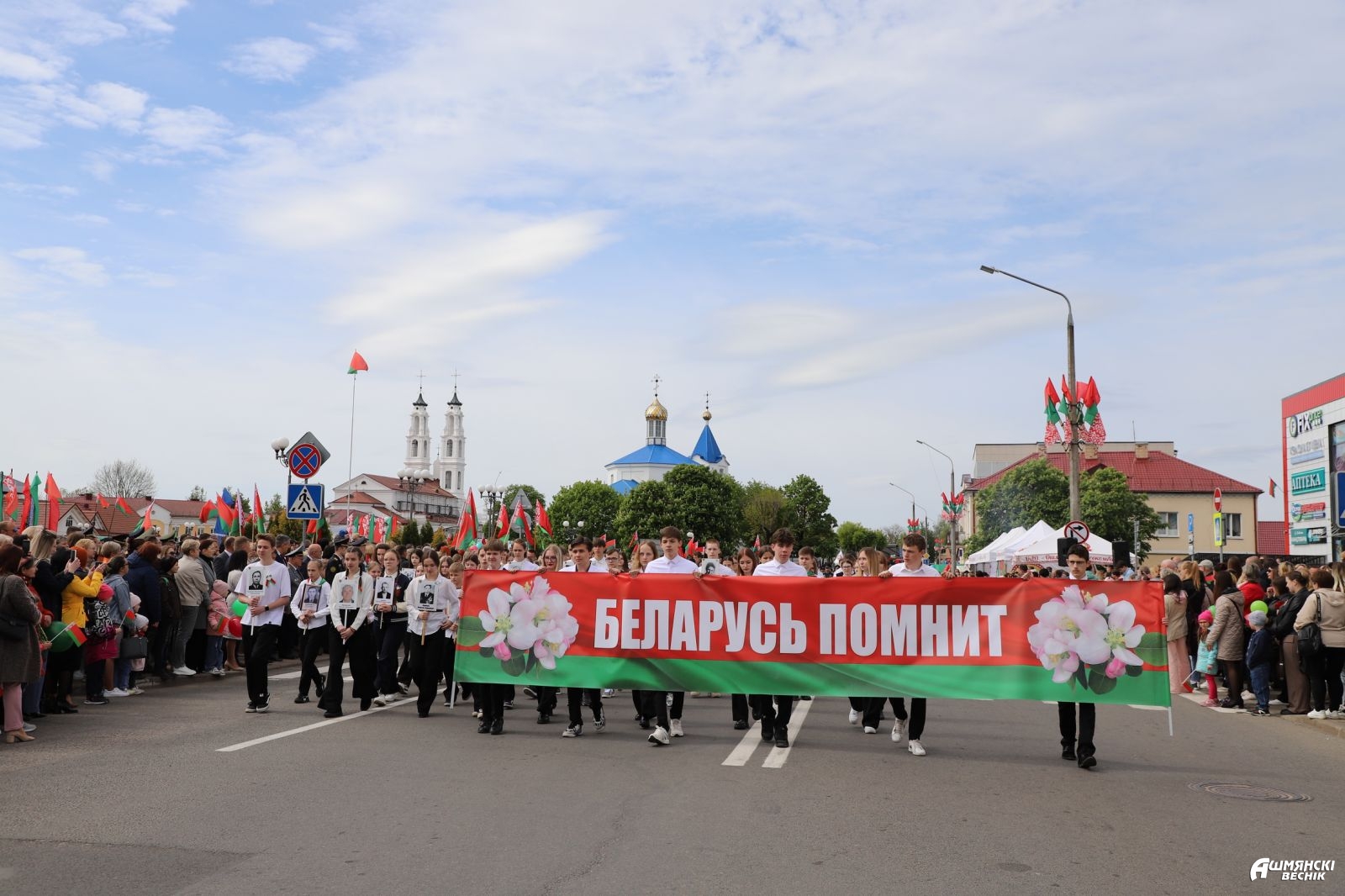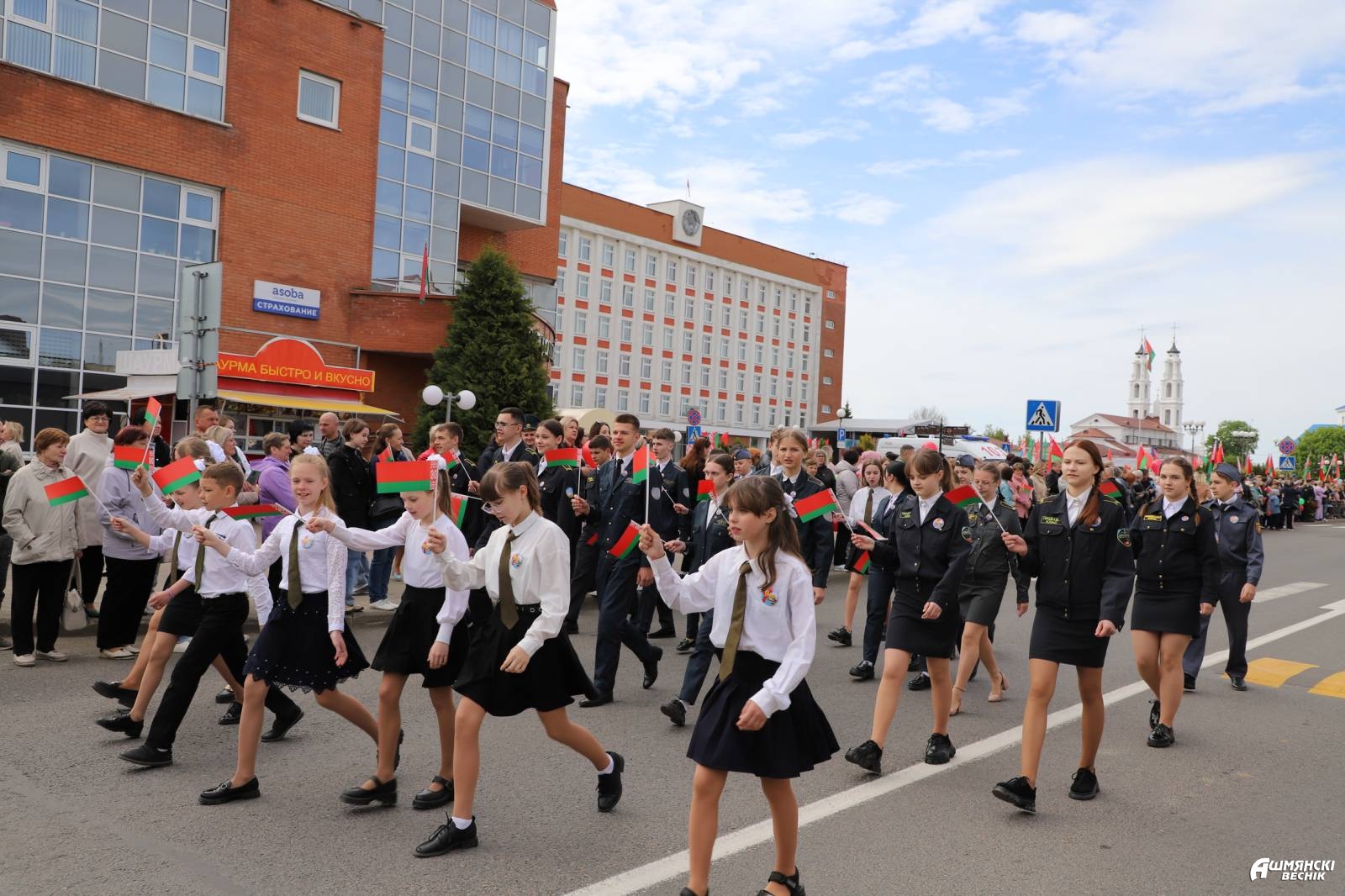 Районный праздник «На всех одна Великая Победа», который собрал на главной площади Ошмян представителей органов местной власти, общественных объединений, силовых структур, трудовых коллективов, молодежь и детей, начался торжественным шествием. Открыла праздник знаменная группа учреждений образования. В ее составе – учащиеся, отмеченные выдающимися достижениями в учебе, активно проявившие себя в общественной жизни школы и района.