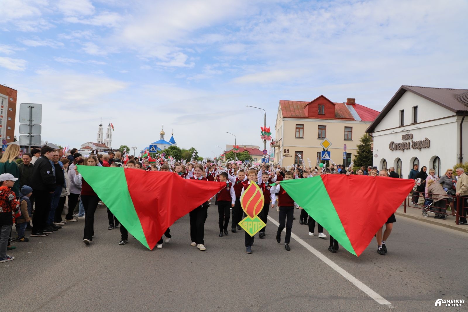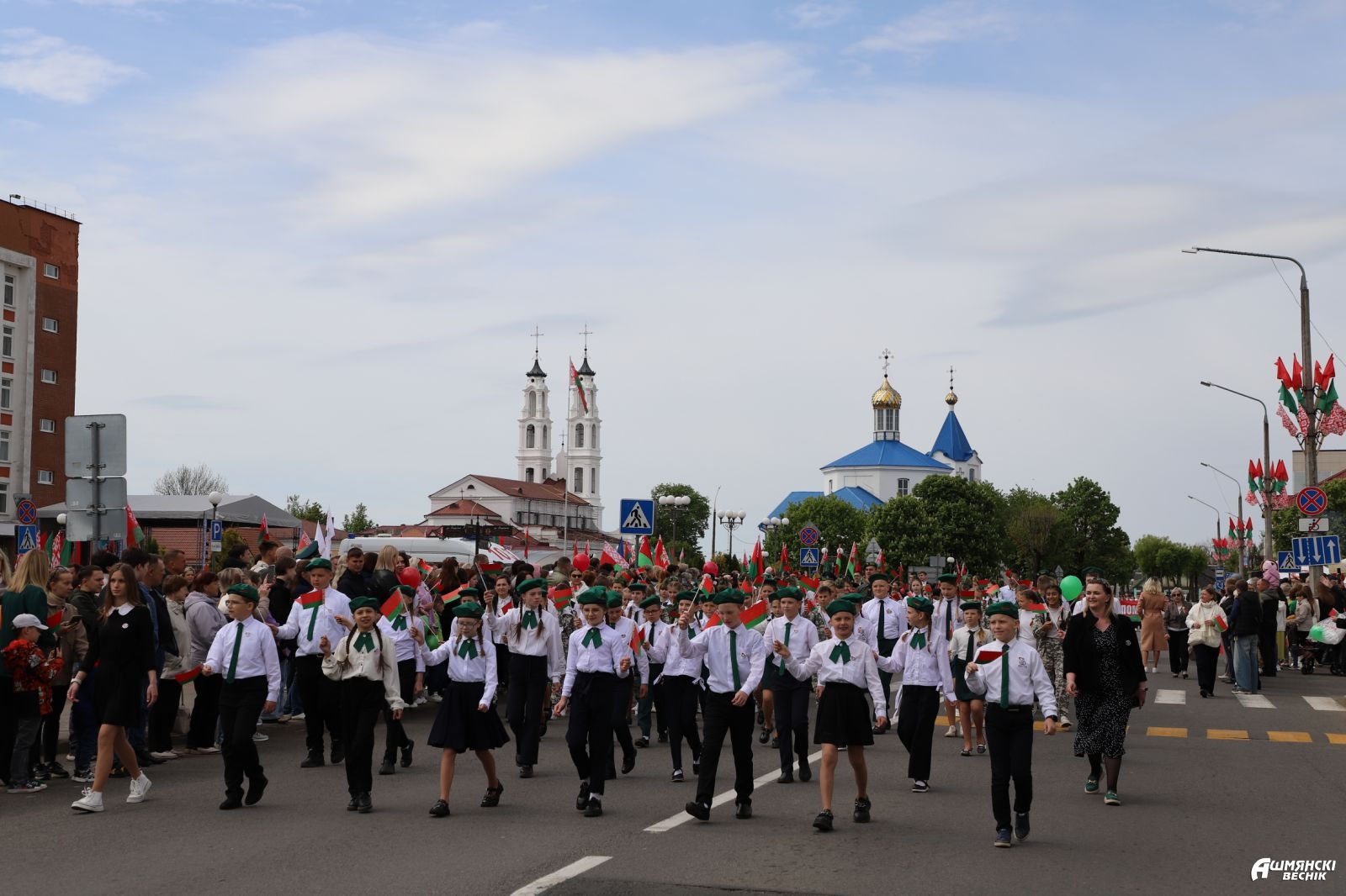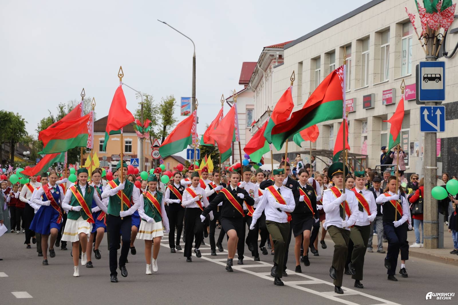 Районный праздник «На всех одна Великая Победа», который собрал на главной площади Ошмян представителей органов местной власти, общественных объединений, силовых структур, трудовых коллективов, молодежь и детей, начался торжественным шествием. Открыла праздник знаменная группа учреждений образования. В ее составе – учащиеся, отмеченные выдающимися достижениями в учебе, активно проявившие себя в общественной жизни школы и района.