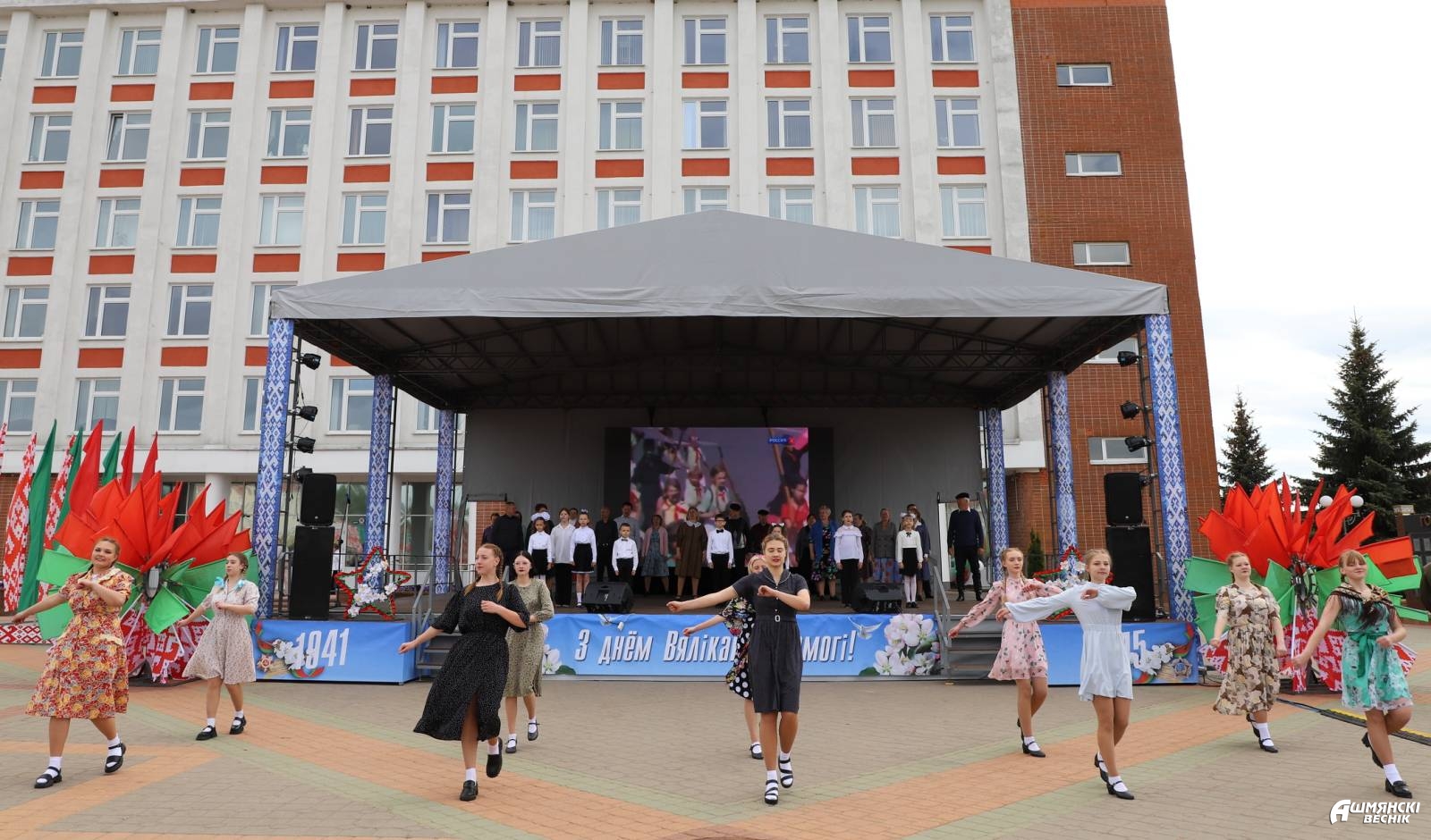 «Вальс Победы» закружил ошмянцев в танце — акцию, предложенную работниками культуры и учащимися, поддержали многие горожане.