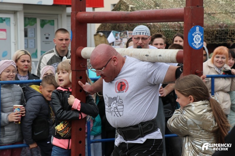 Далее зрителей ждало настоящее уличное представление «Шоу силачей». Ошмянцы могли не только наблюдать за выступлением спортсменов, но и принимать непосредственное участие в номерах. Атлеты демонстрировали выносливость, силу и сноровку, удивляя тем самым и детей, и взрослых.