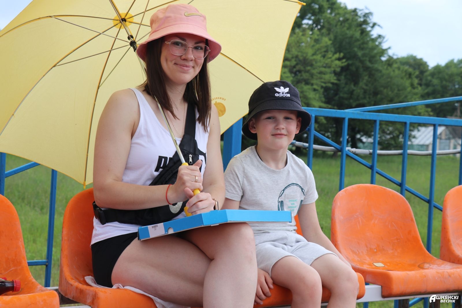 За футболиста ошмянской команды Никиту Беляцкого переживали на трибунах жена Татьяна и крестный сын Филипп, игрока Алексея Треймака пришел поддержать отец Виктор Треймак.