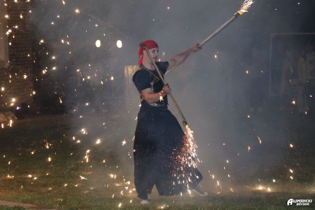 Прыгожым завяршэннем вечара стала вогненнае шоу, якое надало замкавым мурам асаблівай таямнічасці. Госці з захапленнем назіралі за яркім відовішчам, рабілі фотаздымкі.