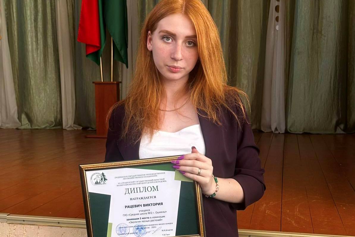 Ученица 9 класса СШ № 2 г. Ошмяны Виктория Рацевич стала победительницей областного этапа республиканского юниорского конкурса «Квітней, мой лес», организованного Министерством лесного хозяйства Республики Беларусь.