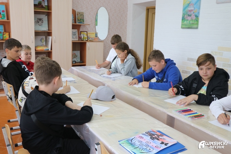 Встреча с воспитанниками дневного оздоровительного лагеря «Следопыт» СШ № 3 г. Ошмяны произошла в центре творчества детей и молодежи, куда ребята из трех отрядов пришли на занятия по интересам. Их ждали кружки «Изостудия», «Мягкая игрушка» и «Дизайн одежды». Занятия с ними проводили педагоги центра творчества детей и молодежи.