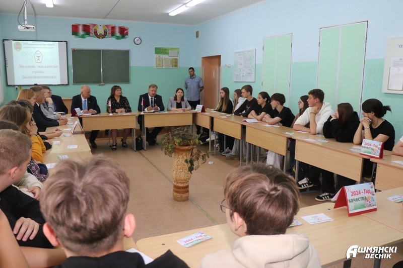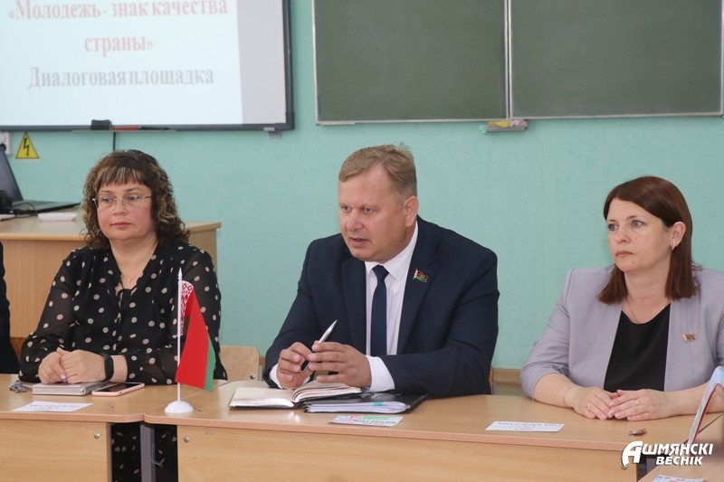 Диалоговая площадка в молодежной среде по вопросам государственной молодежной политики — актуальная тема, волнующая подрастающее поколение. Внимание ее участников было сосредоточено на посыле «Молодежь — знак качества страны». Вместе с депутатом, начальником отдела идеологической работы и по делам молодежи Ошмянского райисполкома Ольгой Шидловской ребята обсуждали вопросы, связанные с ролью молодых людей в жизни страны.