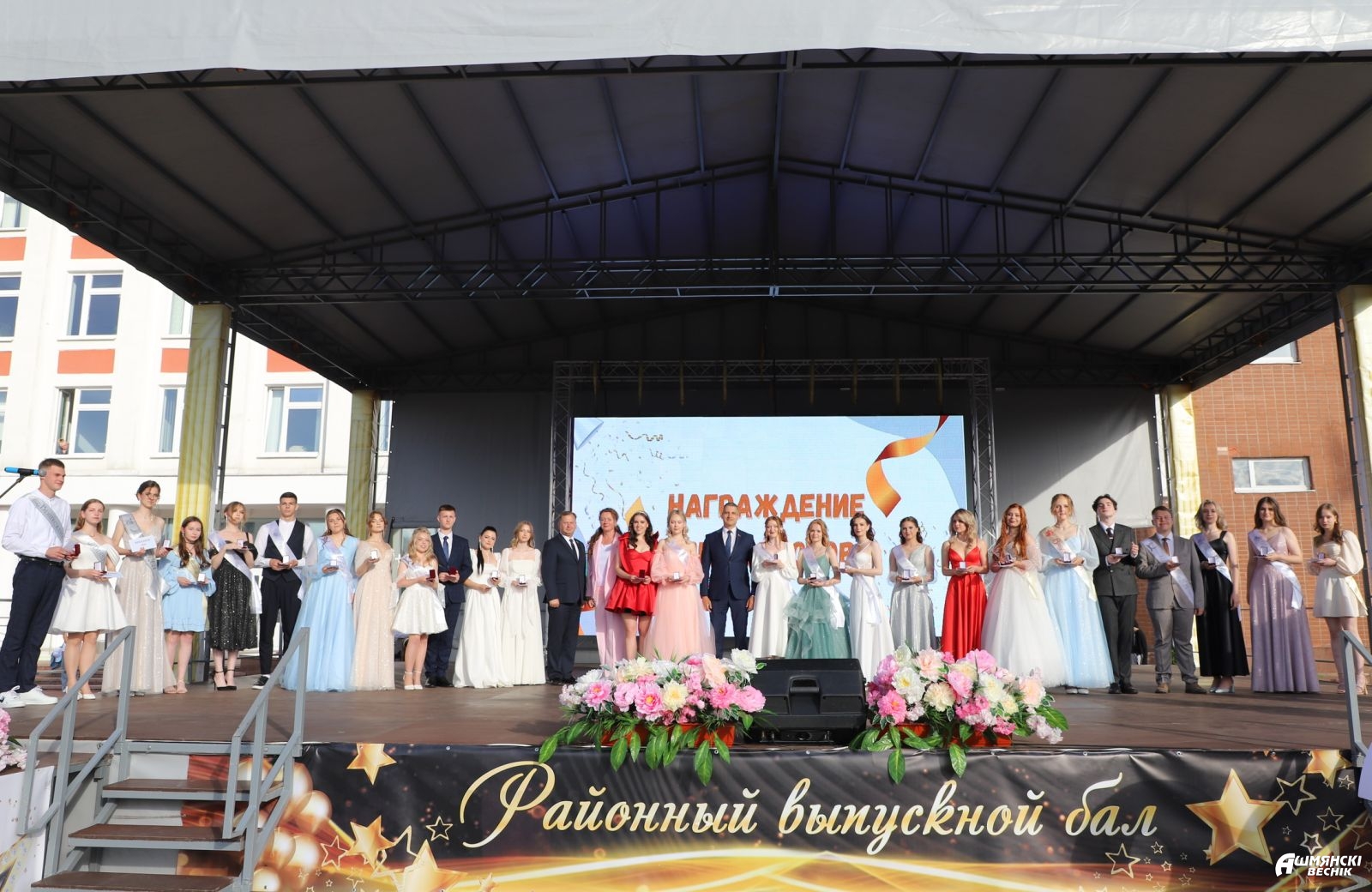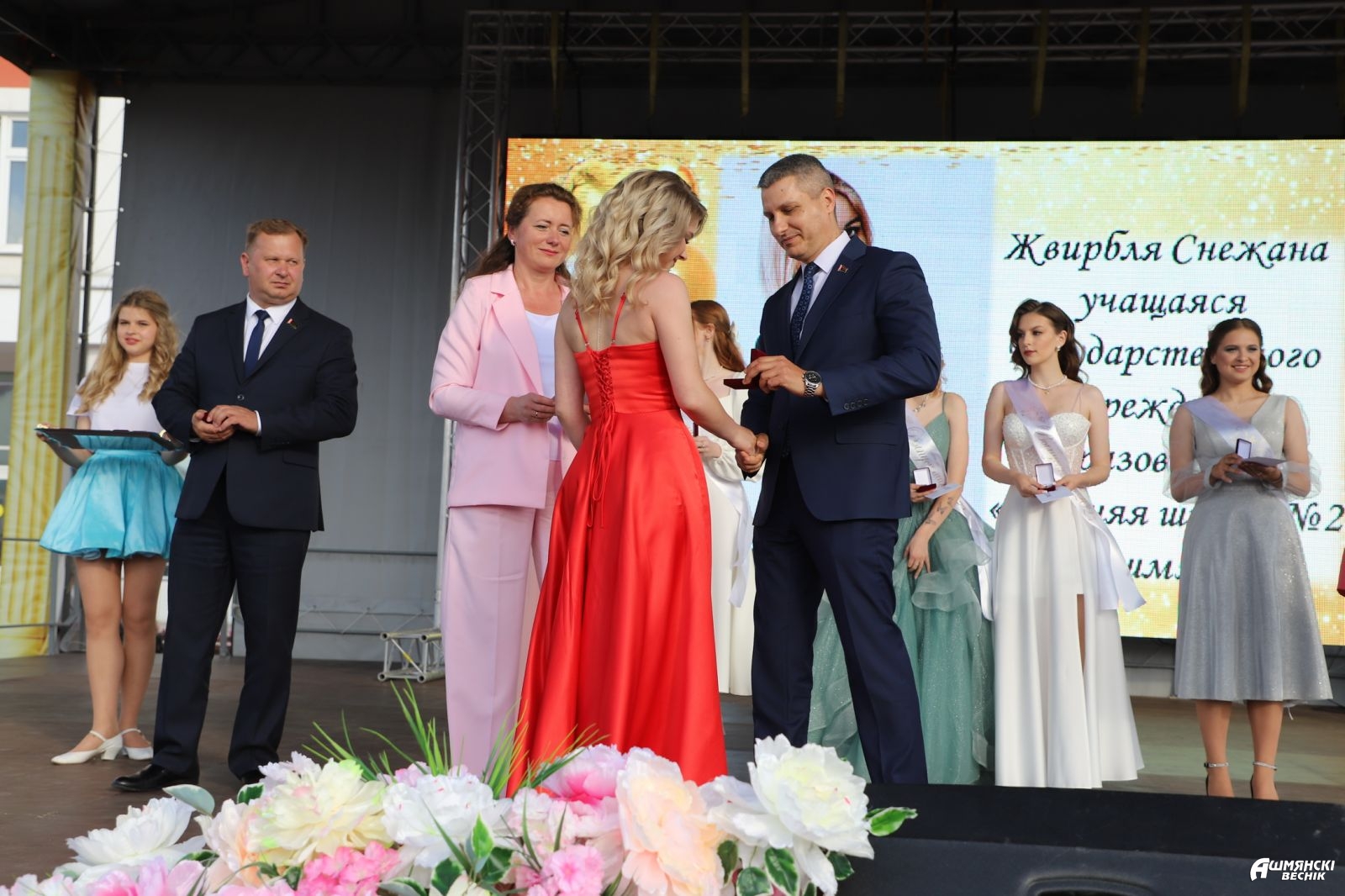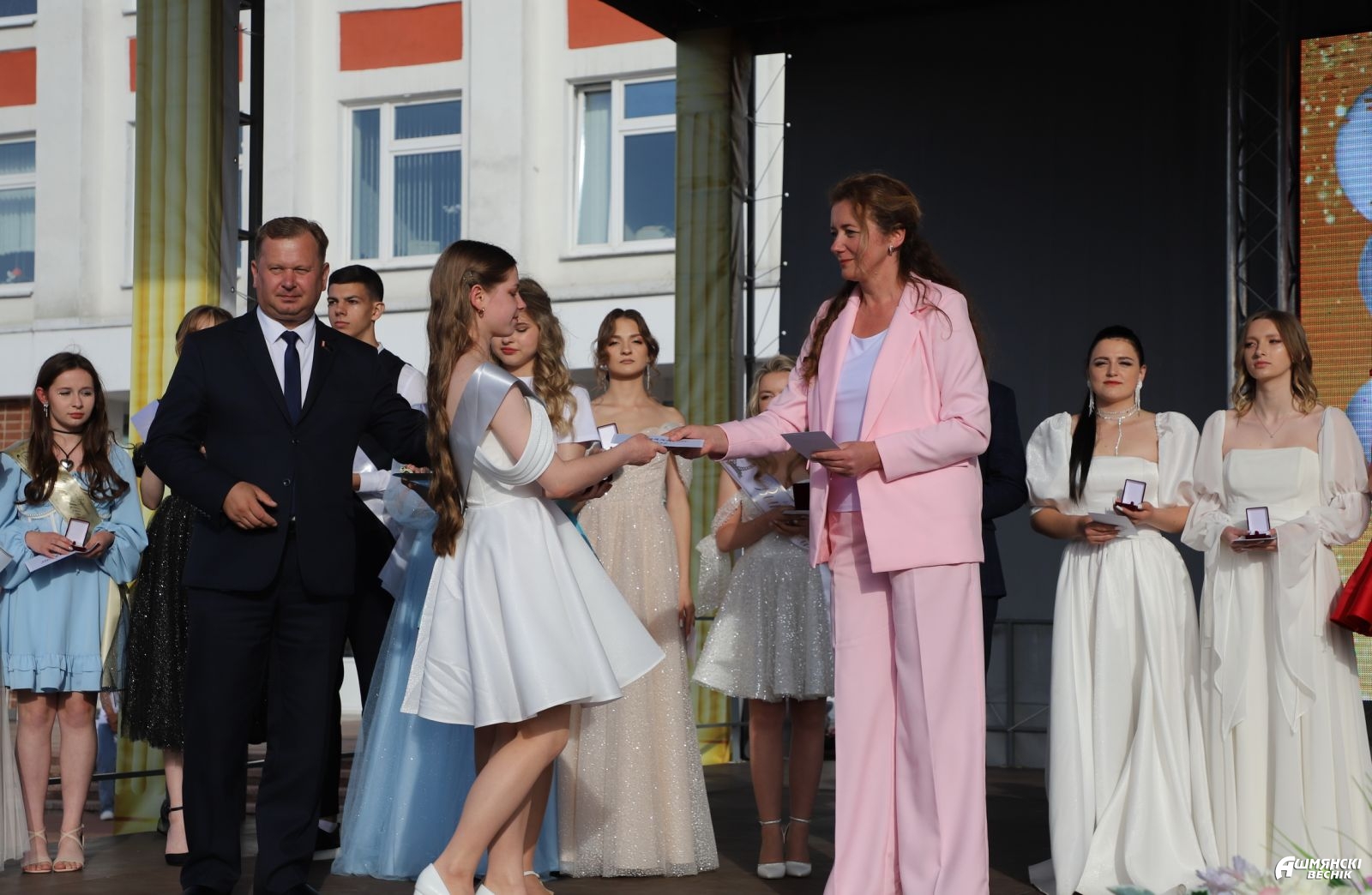 Продолжила торжество церемония награждения. Лучшим из лучших – 26 выпускникам – председатель райисполкома Владислав Гершгорин, депутат Палаты представителей Виталий Раковец и начальник управления образования Светлана Барковская вручили золотые медали за отличную учебу.