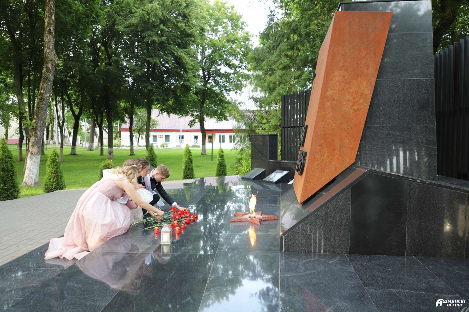В год 80-летия освобождения Беларуси от немецко-фашистских захватчиков юноши и девушки возложили цветы к братской могиле в городском парке.