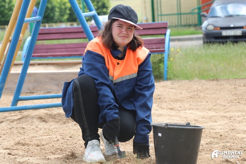 Ребят в яркой форме видно издалека. Они активно работают на детской площадке, очищая ее от сорняков. Молодежь бодра и весела. Девушки шутят, что работа в студотряде преображает, ведь есть хорошая возможность получить красивый бронзовый загар. Вместе с подростками трудятся и педагоги. Анастасии Колышко, педагогу-организатору СШ № 2, на несколько недель пришлось сменить трудовую деятельность. Сейчас она является командиром экологического отряда. Девушка признается, что работа с молодежью приносит ей настоящее удовольствие. За время совместного труда ей удалось по-настоящему «сдружиться» со своими подопечными.