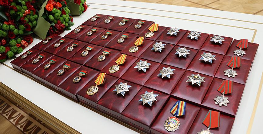 Впрочем, с полной самоотдачей, фактически по законам военного времени сейчас должны трудиться и представители гражданских профессий, убежден глава государства. Такую работу, по его словам, годами демонстрируют те, кто присутствует на церемонии награждения во Дворце Независимости. В их числе — авторитетные управленцы, посвятившие себя непростой государственной службе, обеспечению конституционной законности и народовластия, а также руководители крупных предприятий и целых отраслей экономики.