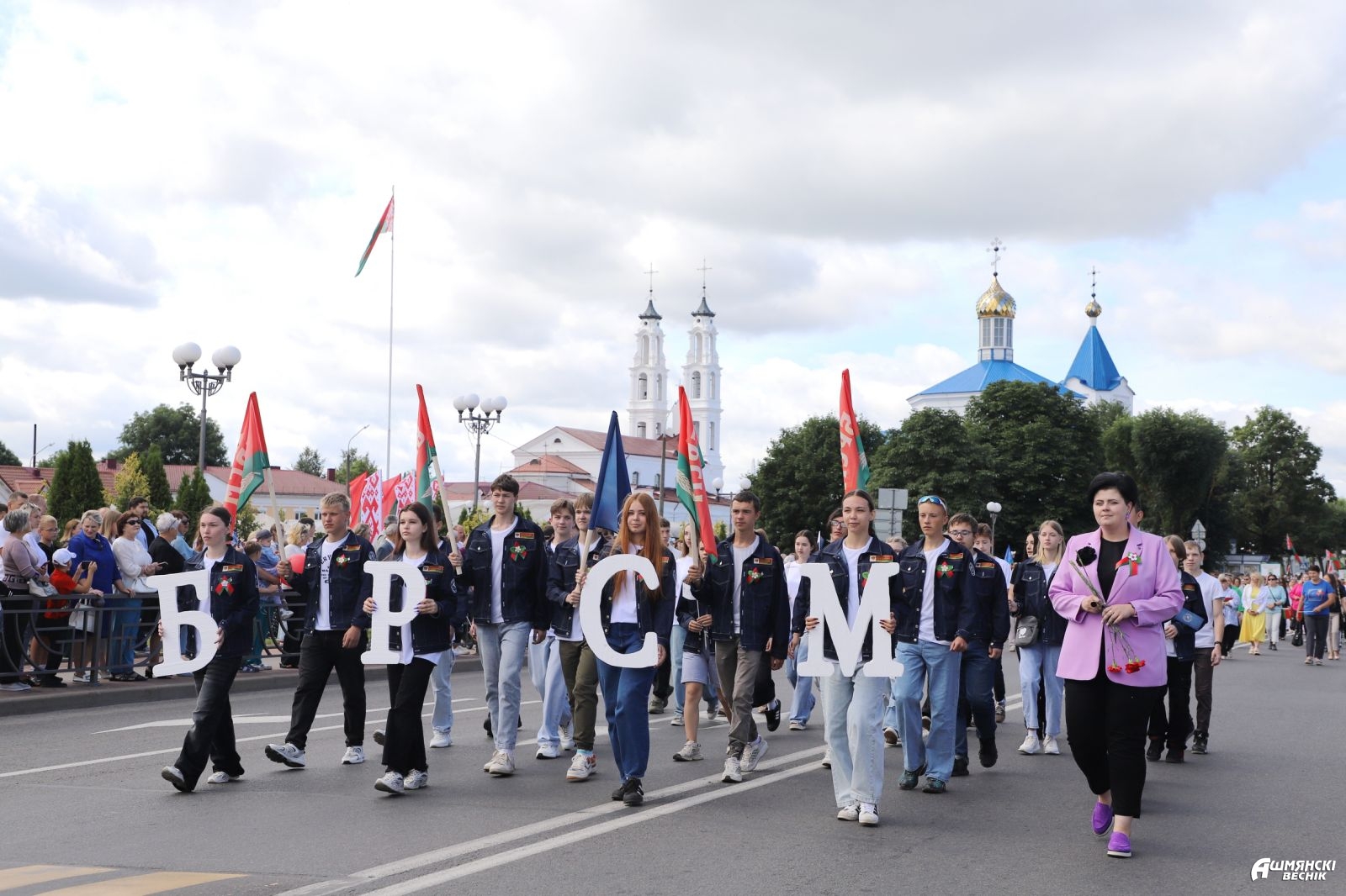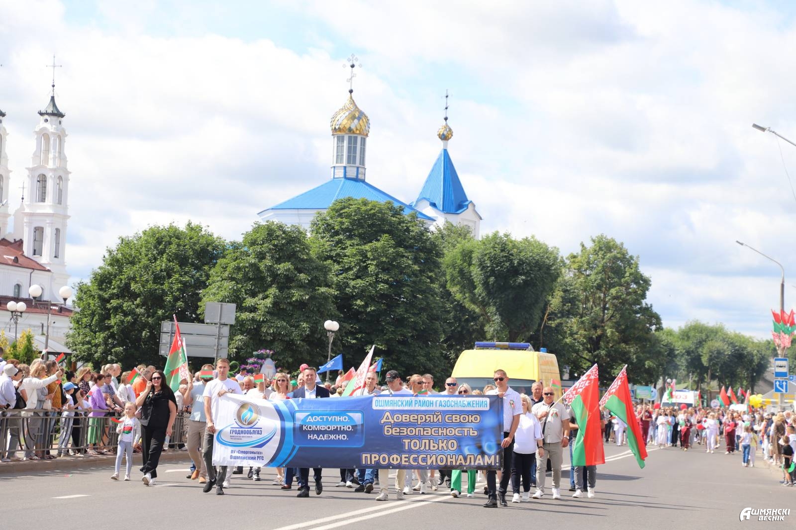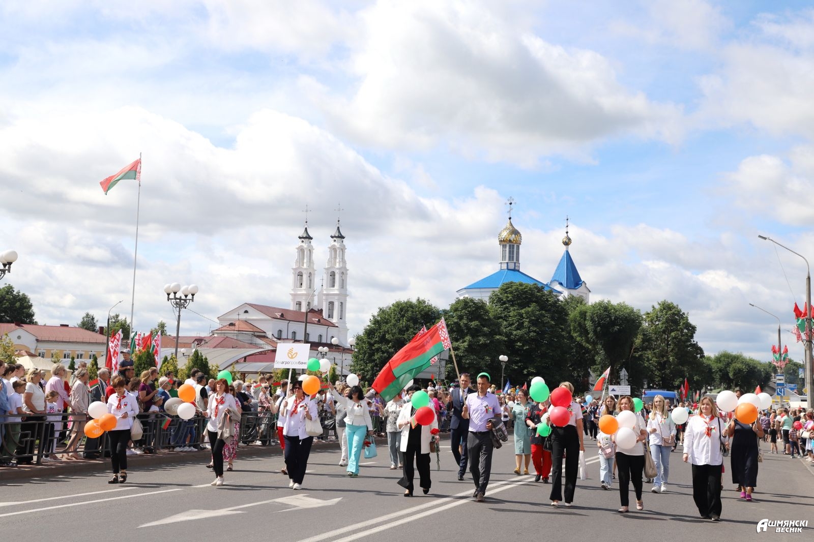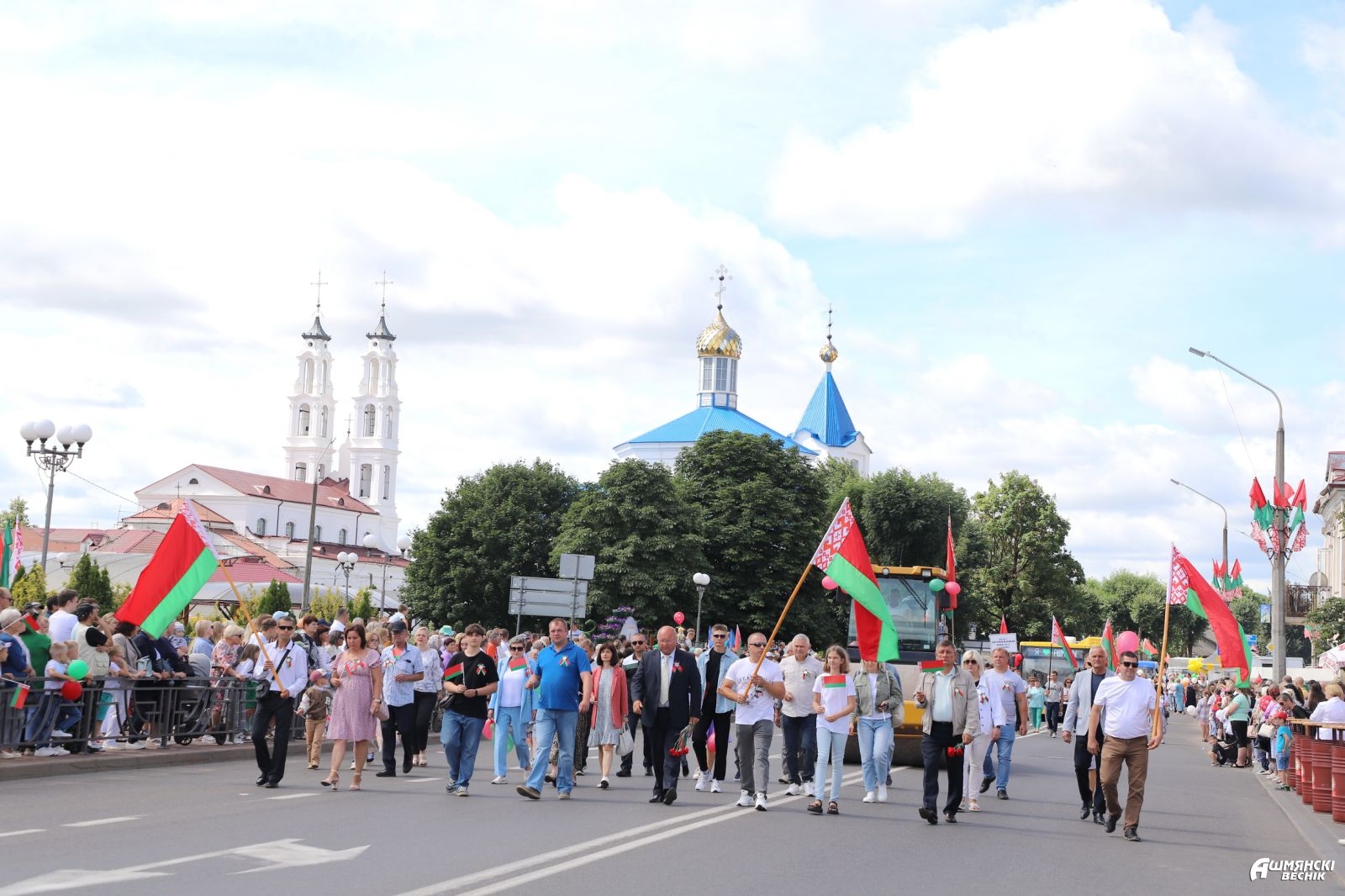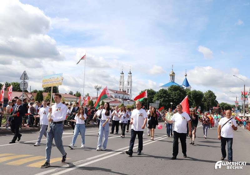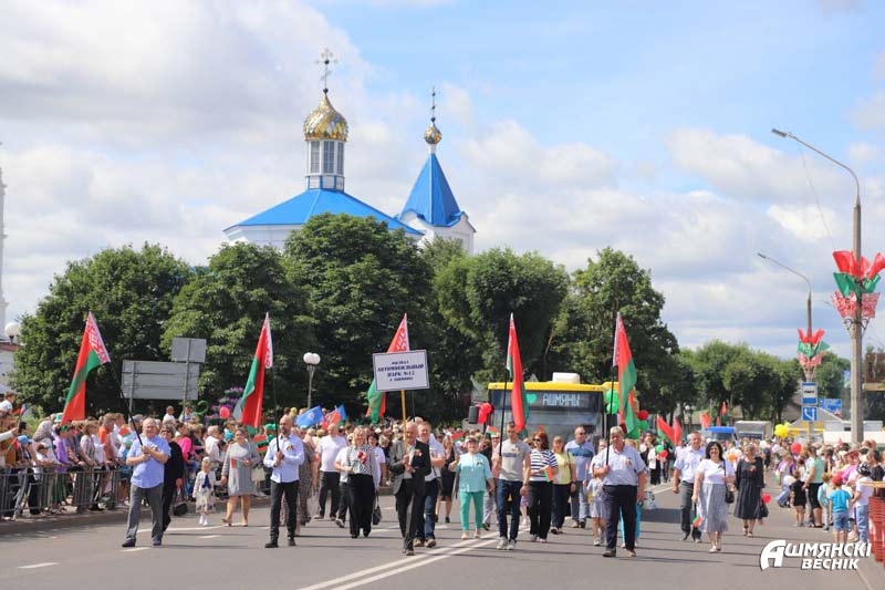 В День Независимости Республики Беларусь в Ошмянах состоялись автопарад «Нам мир завещано беречь» и торжественное шествие учреждений и организаций района, которые стали основой единения гражданского общества, символом вечной, общенациональной благодарности поколению освободителей.