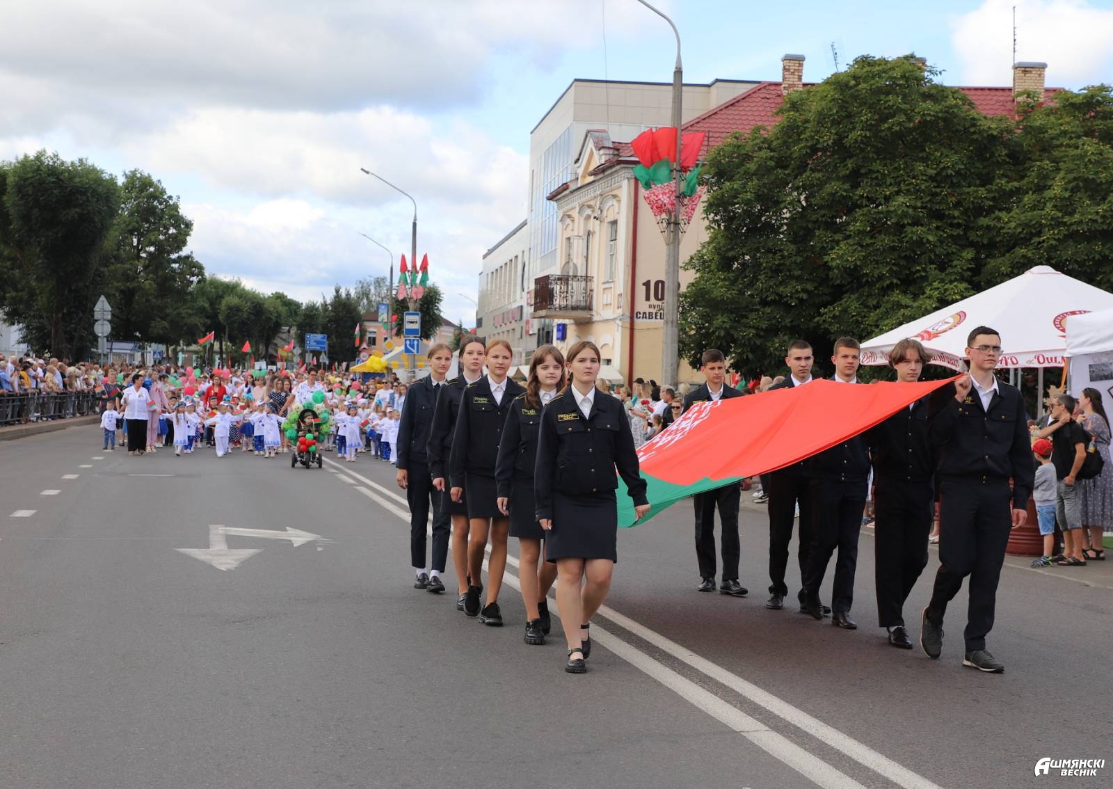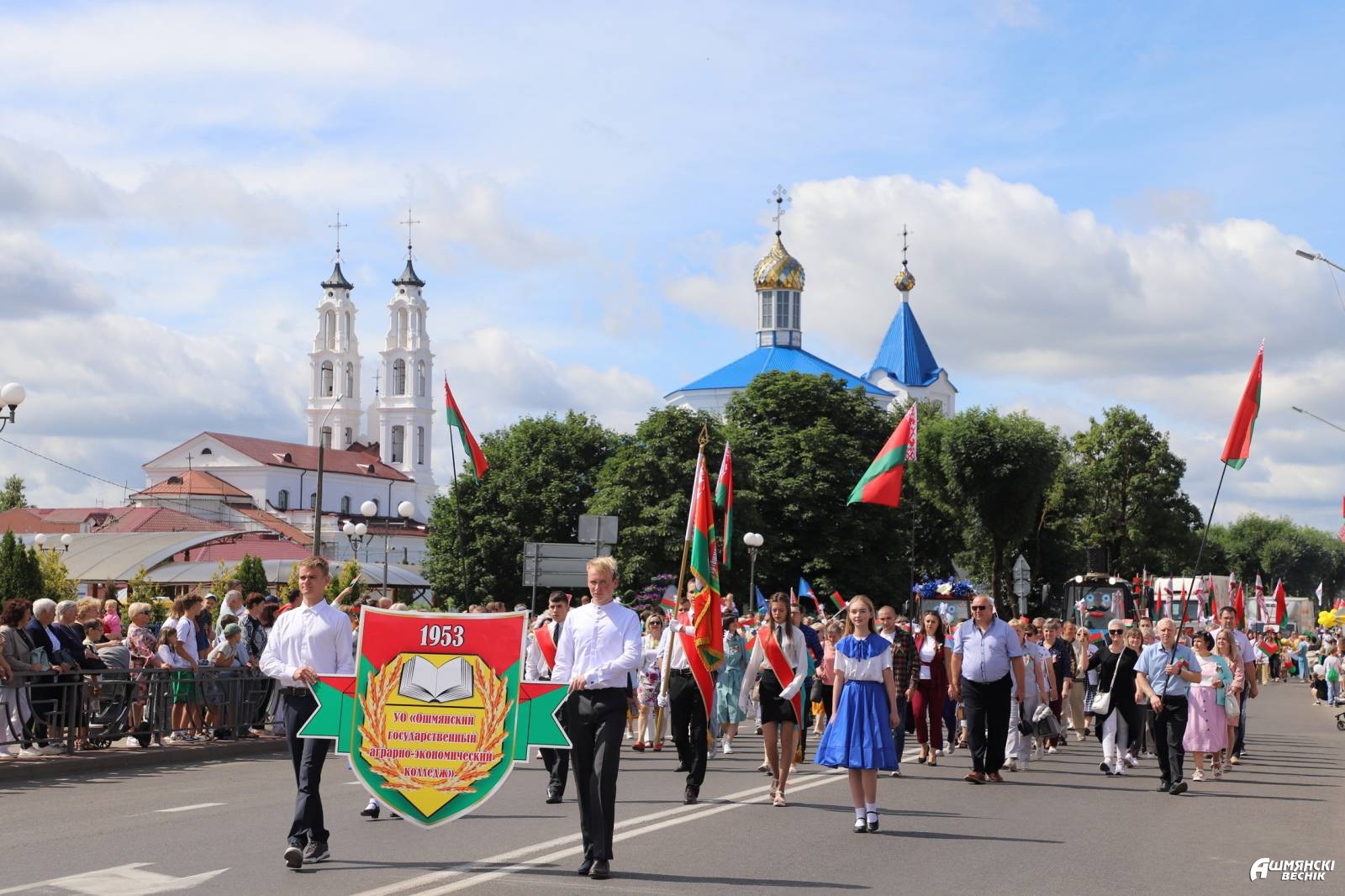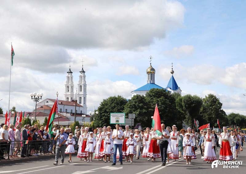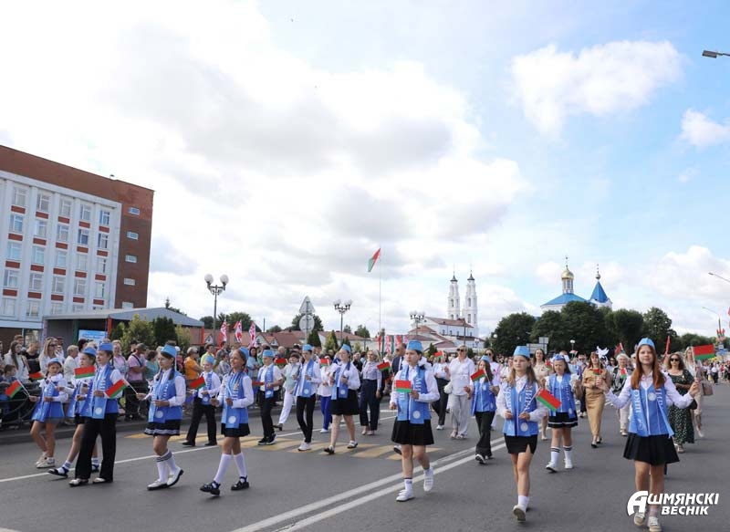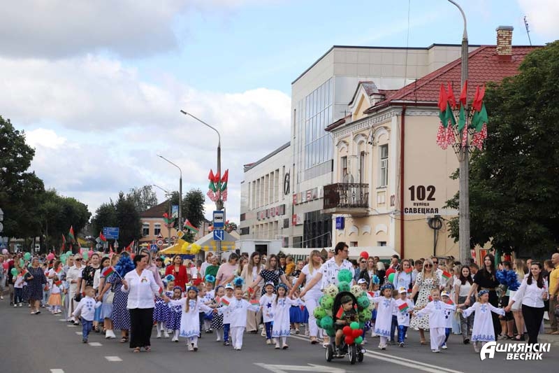 Ошмяны – город строящихся домов, зеленых парков, город туристических и культурных открытий, город ярких спортивных побед. Это город открытых, миролюбивых, толерантных, любящих мир и покой людей. Это город, в котором уютно и счастливо живется детям. Они гордо прошествовали в ярких тематических колоннах – горожане приветствовали воспитанников дошкольных учреждений, многодетные семьи, учащихся учреждений образования, Школы мира.
