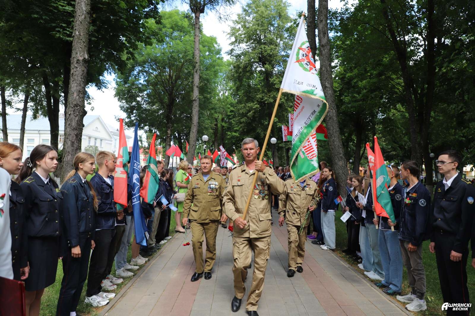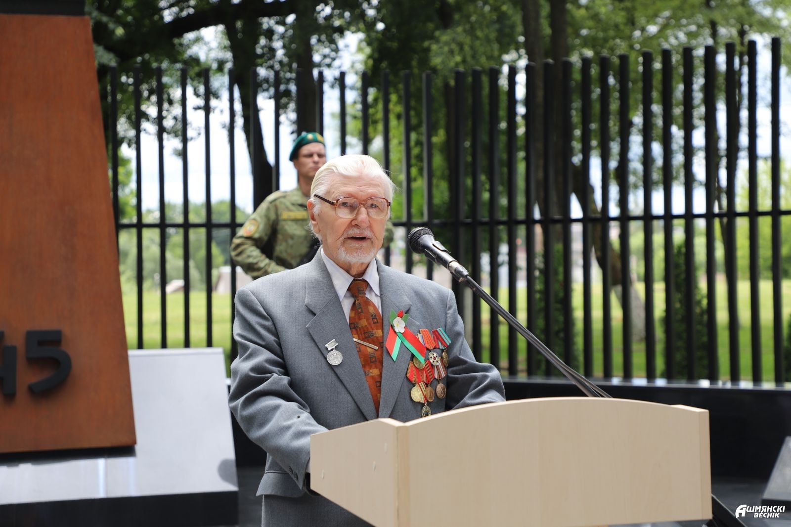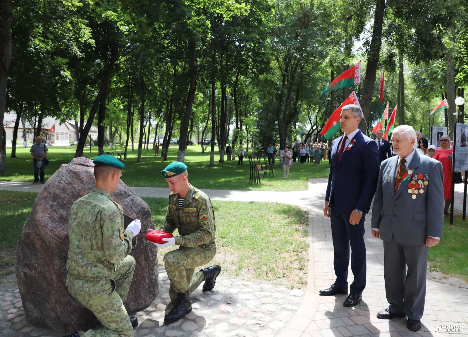 В этот значимый для каждого белоруса день состоялась церемония закладки капсулы памяти с посланием потомкам от малолетних узников фашистских лагерей Василия Кирилловича Жевняка и Марии Егоровны Селедцовой. Василий Кириллович обратился к молодежи: