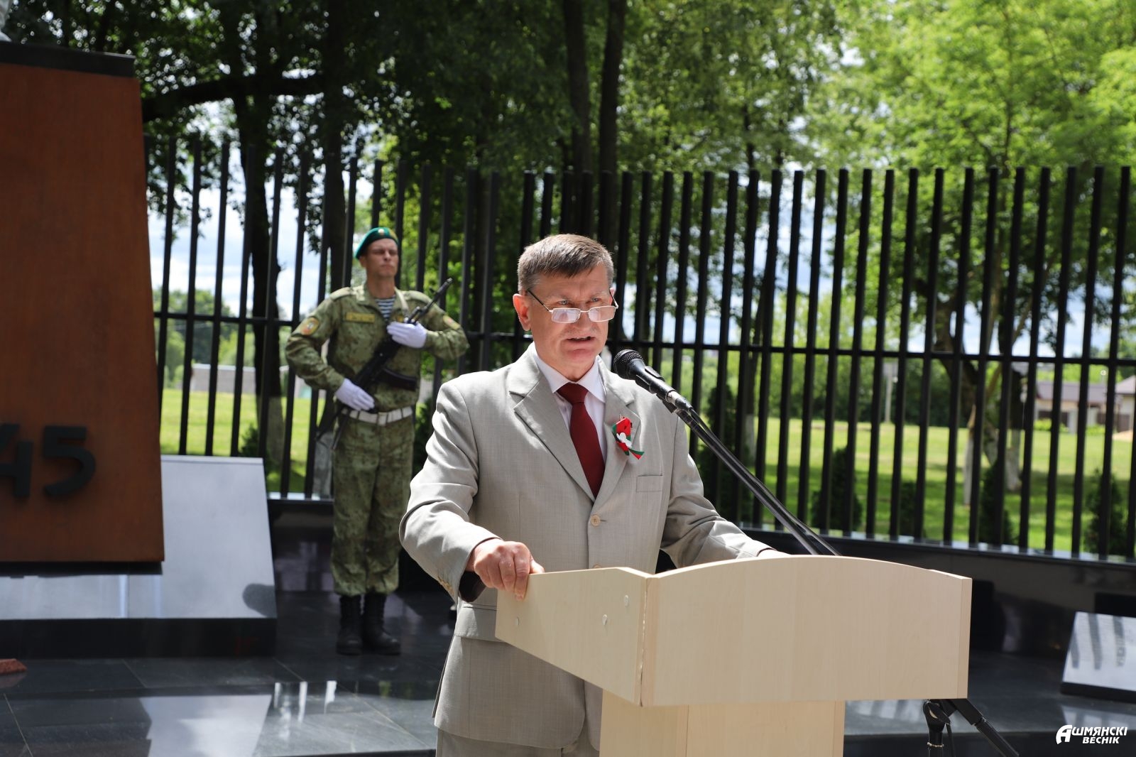 После торжественного исполнения Государственного гимна Республики Беларусь к присутствующим обратился председатель районного Совета депутатов Юрий Карпович, который напомнил о долге каждого – сохранять историческую память, беречь мир.