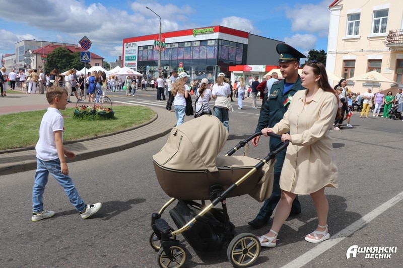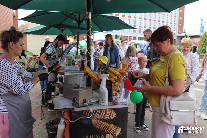 Масса развлечений ждала ошмянцев в День независимости. Было что посмотреть и где отдохнуть и взрослым, и детям. Уличные кафе, выставки-дегустации продукции сельскохозяйственных организаций и перерабатывающих предприятий района, агроусадеб, полевые кухни привлекали своих покупателей. У торговых палаток Ошмянского филиала облпотребобщества и мясокомбината шел бойкий торг.