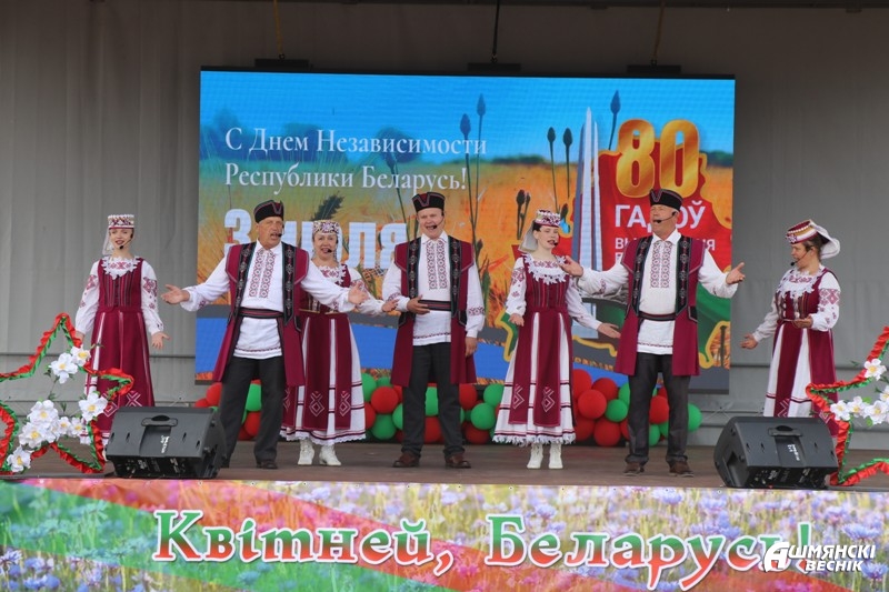 Меломанов и поклонников фольклора ждал концерт районных творческих коллективов – народного семейного ансамбля «Граўжанцы», народного ансамбля «Жытніца», народного вокального ансамбля «Мельница». Свое выступление подарила горожанам Ольга Чаплинская. Песни о Родине, любви и мире звучали со сцены, создавая праздничное настроение, вызывали улыбки и аплодисменты зрителей.