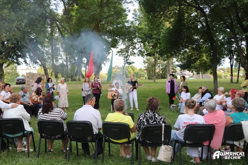 Анна Язель, заместитель председателя райисполкома, поприветствовав присутствующих, обратила внимание на то, что подобное мероприятие проводится в Ошмянах впервые, но весьма приятно, что оно собрало у костра столько неравнодушных сердец. Исполнить песню под любой музыкальный инструмент мог каждый желающий, и таких было немало. В воздухе витал дух единства, а душевное исполнение песни «Хата бацькоў» отозвалось теплотой в сердце каждого, кто сумел побывать там.