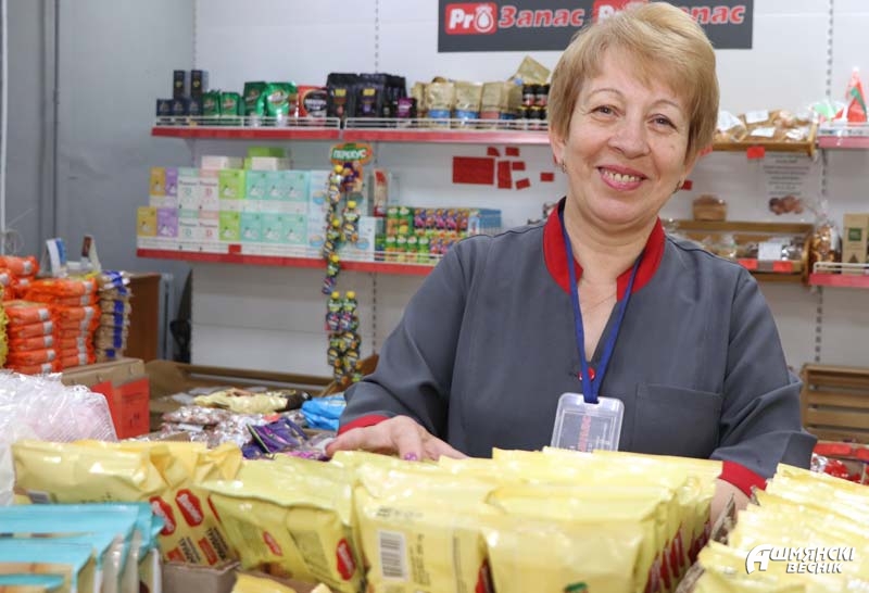 Не ошибусь, если скажу, что у большинства жителей Ошмян есть свои любимые магазины. Для меня такой торговой точкой стал довольно большой магазин Ошмянского филиала областного потребобщества «ProЗапас», расположенный в пятиэтажке по улице Советской, который возглавляет Людмила Станкевич. Привлекает он покупателей широким ассортиментом товаров, среди которых как продовольственная линейка, так и непродовольственные товары домашнего обихода. Все они рассредоточены на удобно расположенных, доступных каждому посетителю, стеллажах. К тому же в магазине трудится дружный и доброжелательный коллектив. Среди них — продавец шестого разряда Елена Юшко.
