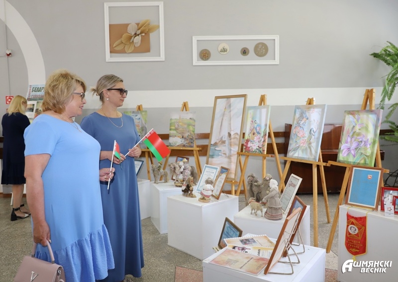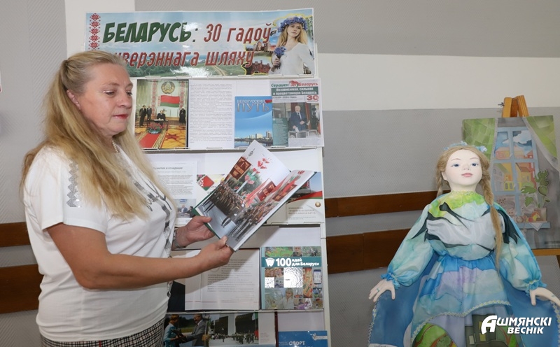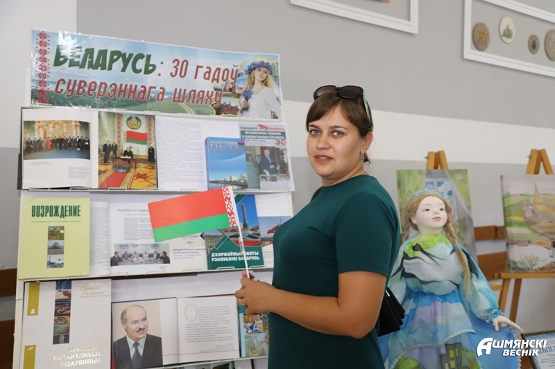 В фойе районного центра культуры развернулись тематические выставки. Участники мероприятия смогли проследить путь становления суверенного государства, вспомнить важнейшие вехи истории, успехи и достижения, которыми славится наша страна и Ошмянский район в частности.