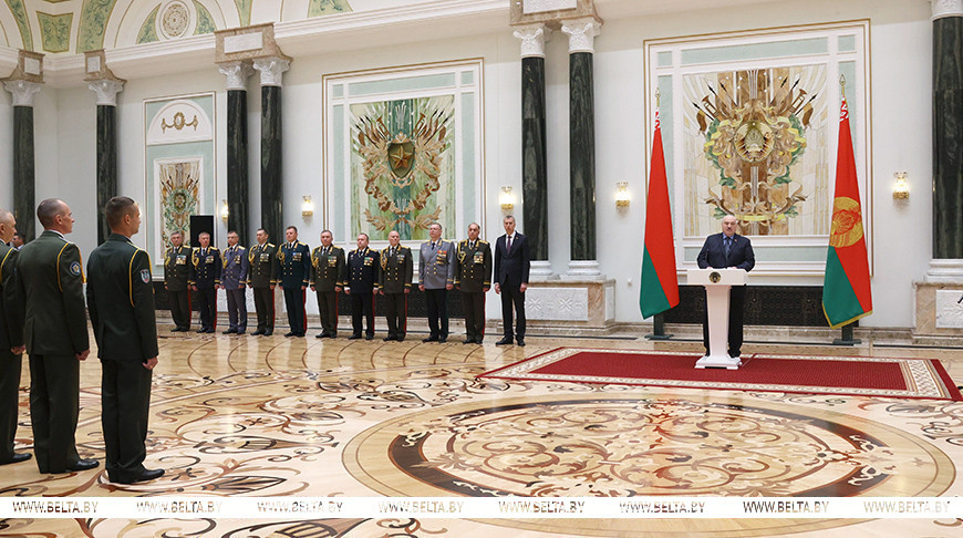 Президент также вручил генеральские погоны представителям высшего офицерского состава: погоны генерал-майора — полковникам Александру Быкову, Игорю Козлову, Вадиму Сурову и Руслану Чехову, погоны генерал-майора внутренней службы — полковнику внутренней службы Сергею Салановичу, погоны генерал-майора юстиции — полковнику юстиции Алексею Алешкевичу. Начальнику Гомельской таможни Андрею Мисюченко присвоено персональное звание государственного советника таможенной службы III ранга.