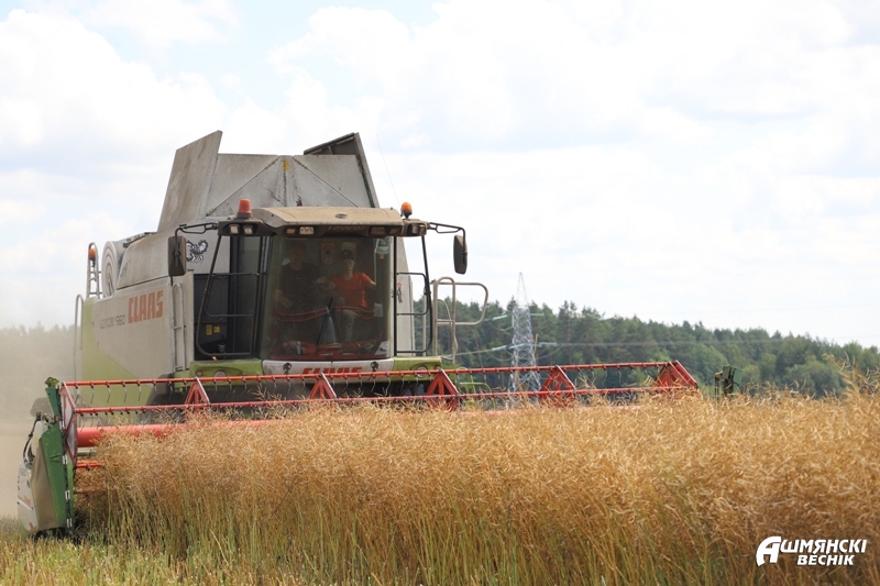 На палетках КСУП “Гальшаны” зранку да вечара шчыруюць дзевяць экіпажаў, якія зараз падзелены два звяны: адно абмалочвае азімы рапс, другое задзейнічана на ўборцы яравога ячменю, клін якога ў гаспадарцы складае 578 гектараў.