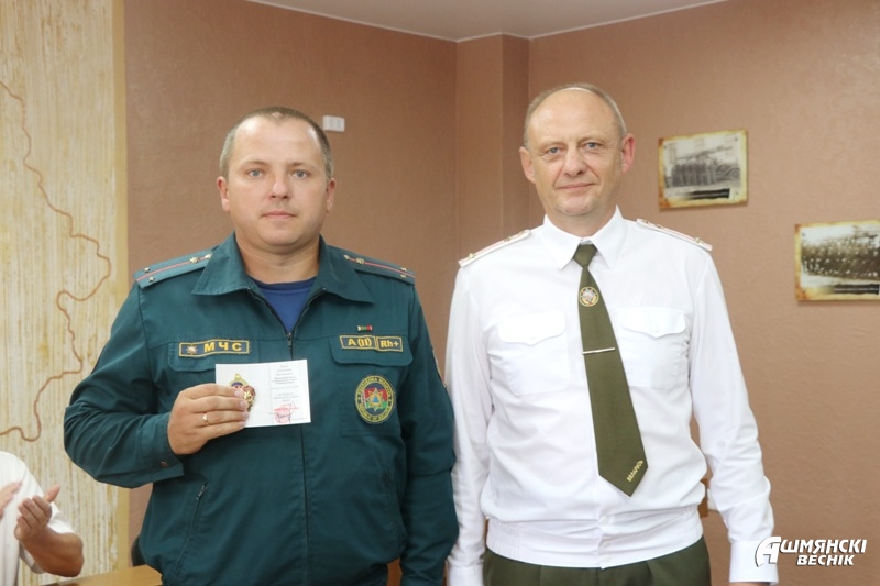 Благодарность Министра по чрезвычайным ситуациям Республики Беларусь объявлена первому заместителю начальника Ошмянского районного отдела по чрезвычайным ситуациям Алексею Башкиреву и водителю ПАСЧ-1 Сергею Щулькину.