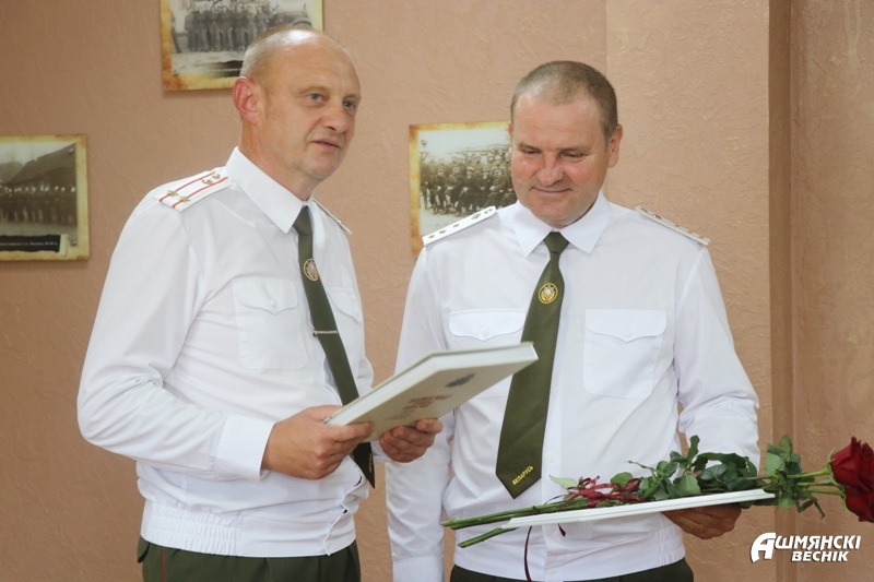 В торжественной обстановке принимал поздравления от начальника отдела Андрея Горбача, председателя райсовета депутатов Юрия Карповича, председателя ветеранской организации Александра Орпика и своих товарищей по работе старший водитель ПАСЧ-1 Иван Свирский. Именно в этот день коллеги проводили его на заслуженный отдых. Руководитель отдела представил личному составу молодого водителя Матвея Станкевича, который придет на смену профессионалу своего дела Свирскому.