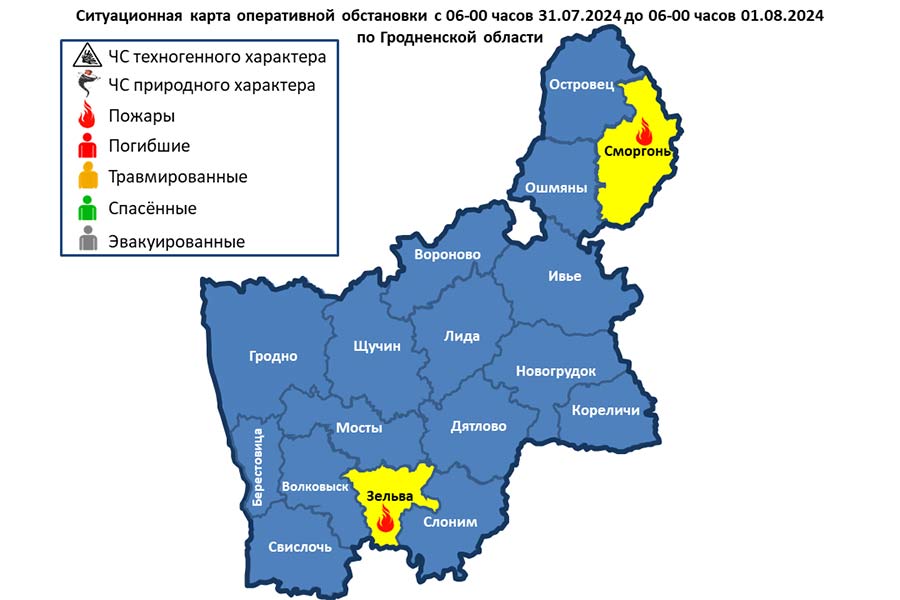01.08.2024 в 04-24 поступило сообщение о пожаре в зерносушилке на территории КСУП «Бородичи» а.г. Бородичи Зельвенского района. Работниками МЧС совместно с персоналом спасено 60 тонн ячменя ярового. Пострадавших нет. Причина пожара устанавливается.