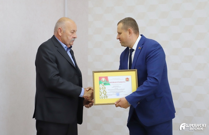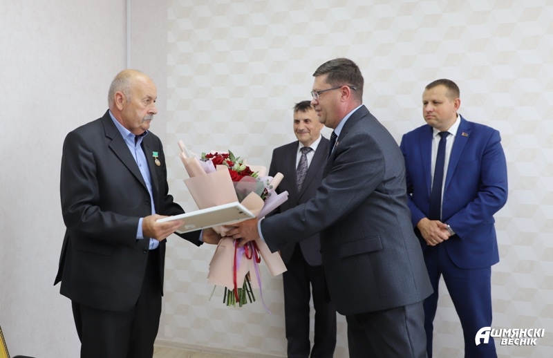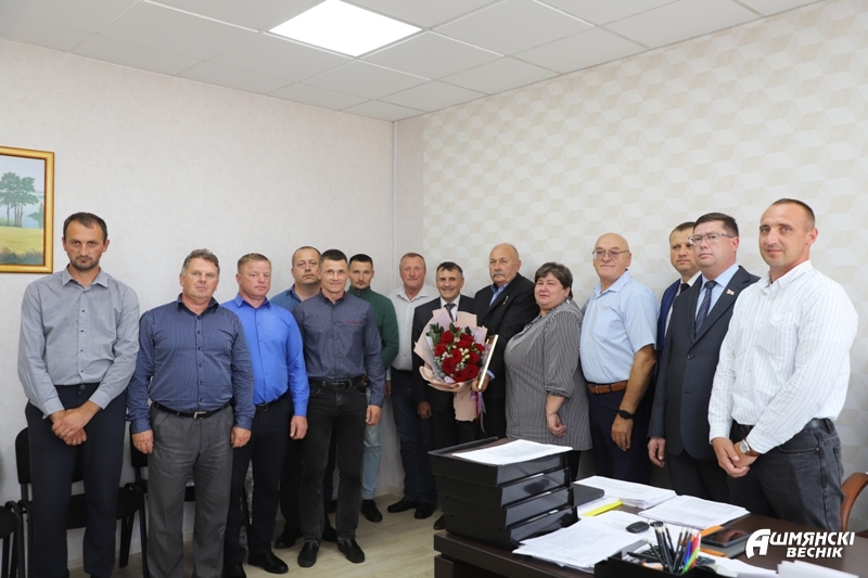 Вместе с добрыми словами под дружные аплодисменты присутствующих Александр Шиманович принимал Почетную грамоту Гродненского областного исполнительного комитета, нагрудный знак отличия Министерства сельского хозяйства и продовольствия «За заслугі ў сельскай гаспадарцы», Грамоту районной профсоюзной организации работников АПК.