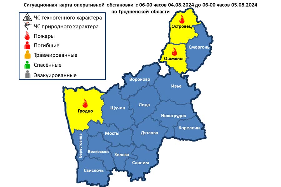 04.08.2024 в 20-50 поступило сообщение о пожаре в трехкомнатной квартире жилого дома в аг. Подольцы Островецкого района. В результате повреждены постельные принадлежности. Причина пожара устанавливается.