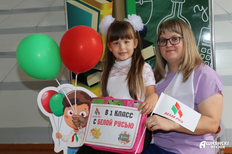 С приветственным словом к собравшимся обратилась Ольга Саванец, заместитель председателя Ошмянской районной организации РОО «Белая Русь». Она поздравила ребят со знаменательным и важным событием в их жизни, пожелала им с первых школьных дней быть инициативными, активными и старательными, принимать участие в школьной жизни, радовать родителей своими успехами. После будущие первоклассники получили подарки – наборы канцелярских принадлежностей. В этом году подарки были вручены девяти первоклассникам.
