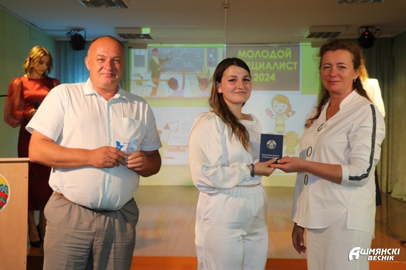 После молодым специалистам был вручен важный документ – трудовая книжка. В этом году система образования Ошмянского района существенно пополнилась специалистами дошкольного образования. В большинстве своем они отправятся работать в детский сад №2, который недавно распахнул свои двери. Кроме трудовых книжек, молодых специалистов ждали подарки от отраслевого профсоюза и районной организации ОО «Белая Русь». После молодые специалисты 2023 года передали памятный кубок педагогическим кадрам нынешнего года.