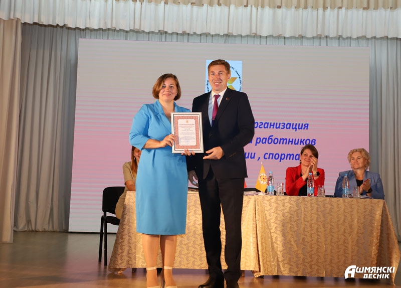 Председатель Гродненского комитета Белорусского профсоюза работников культуры, информации, спорта и туризма Денис Малевич вручил благодарности областной организации Татьяне Черской и заведующей сектором культуры Ошмянского райисполкома Ольге Борисенко-Рабко.