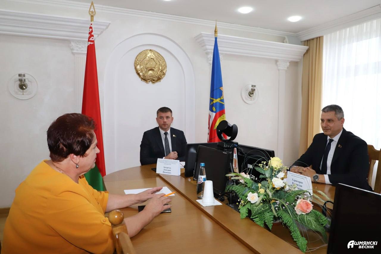 В Ошмянском райисполкоме прием граждан провел член Постоянной комиссии Совета Республики по региональной политике и местному самоуправлению Дмитрий Захарчук. Участие в приеме приняли председатель Ошмянского райисполкома Владислав Гершгорин и член Молодежного парламента при Национальном собрании Республики Беларусь Жанна Шидловская.