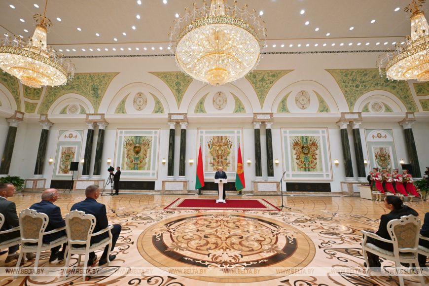 Президент Беларуси Александр Лукашенко начал День народного единства с церемонии вручения государственных наград во Дворце Независимости, сообщает БЕЛТА.