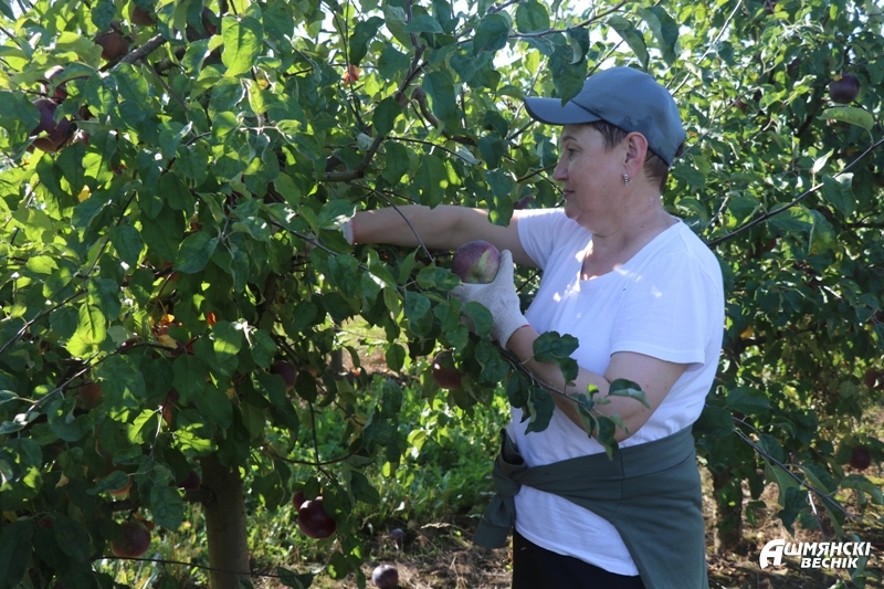 В Ошмянском районе выращиванием яблок занимается КРСУП «Экспериментальная база «Боруны». Рядом с деревней Грибовщина на площади почти в 60 гектаров раскинулся яблоневый сад. Сад заложен в 2010 году, самые молодые деревья – в 2015-м. С ранней весны и до окончания плодоношения деревья требуют ухода – обрезки ветвей, обработки от вредителей, химпрополки, окоски. Уходом за яблонями занимается семь человек – заведующий садом Владимир Кавытин и шесть рабочих. На летний период за садом закреплен трактор.