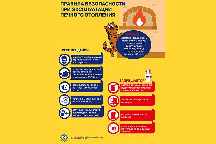 В преддверии холодов важно позаботиться о собственной безопасности, проверить исправность печи и устранить недостатки: вычистить сажу, заделать трещины глиняно-песчаным раствором и побелить дымоход на чердаке, чтобы впоследствии по закопченным местам можно было легко обнаружить трещины и устранить их. Важно навести порядок и в чердачном помещении: не складировать старые вещи и ветошь.