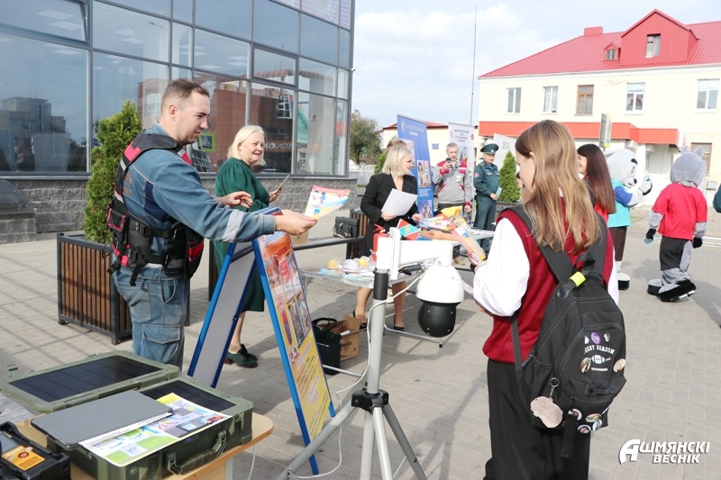 На площадке перед торговым центром «Универмаг» в этот день было особенно многолюдно. Здесь «развернулись» районные службы и структуры: РОЧС, РОВД, отдел охраны, производственный участок БДПО, Ошмянский район газоснабжения, районная организация Белорусского Красного Креста и энергогазинспекция Ошмянской РЭГИ.