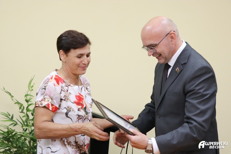Слова благодарности за многолетний труд принимал на торжественном мероприятии токарь монтажного цеха Леонид Бальцевич, награжденный Почетной грамотой областного исполнительного комитета. Поздравления в связи с награждением Почетной грамотой районного исполнительного комитета принимали фрезеровщик механического цеха Виталий Кащиц и водитель Виктор Развадовский. Благодарственным письмом председателя райисполкома отмечен плодотворный труд литейщика пластмасс монтажного цеха Люции Петюлевич и токаря этого цеха Натальи Шульги. Заслуженную награду – Почетную грамоту районного Совета депутатов – получила монтажник радиоаппаратуры и приборов Валентина Кеда. Благодарственным письмом председателя районного Совета депутатов награждена штамповщик механического цеха Марина Казакевич.