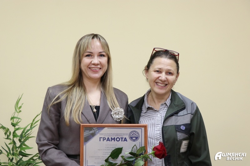 Новых возможностей, конструктивных решений, уникальных проектов и удивительных открытий пожелала своим коллегам председатель профсоюзной первичной организации Татьяна Скуба и вручила Почетную грамоту областного организации профсоюза работников отраслей промышленности «Белпрофмаш» главному бухгалтеру Анастасии Свидович и слесарю механосборочных работ Оксане Кащиц.