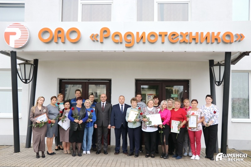 Сергей Концевой отметил, что машиностроение является одной из базовых отраслей экономики нашего района, ее промышленным и интеллектуальным потенциалом. Многие виды продукции, выпускаемые ОАО «Радиотехника», соответствуют самым высоким стандартам, конкурентоспособны и востребованы на внутреннем и внешнем рынках. За всем этим стоит неустанный и ответственный труд коллектива. Цветы принимали на праздничном мероприятии работники, занесенные на Доску почета предприятия. Среди них монтажник радиоаппаратуры и приборов Татьяна Адамович, специалист по маркетингу и сбыту Марина Жебрик, специалист по инструменту и оснастке Оксана Заянчковская, начальник службы материально-технического снабжения Владимир Подъельский, слесарь Валентина Тарасевич, токарь Петр Цыбульский, контролер Наталья Янч, слесарь Ольга Яхимович.